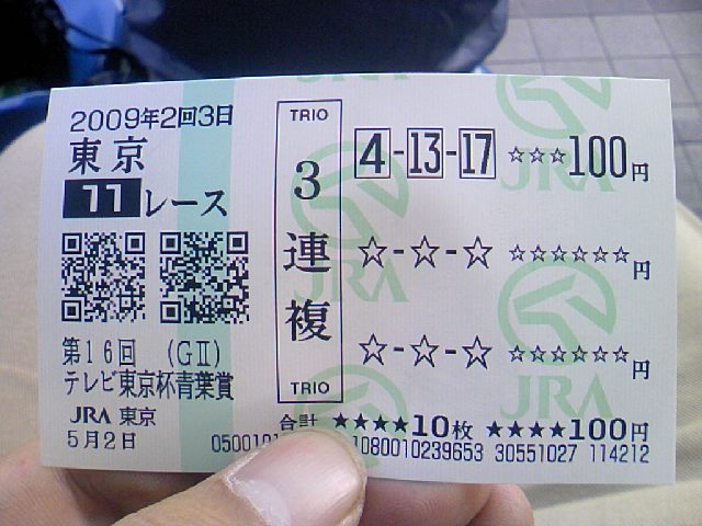 本日の「100円勝負!!」馬券