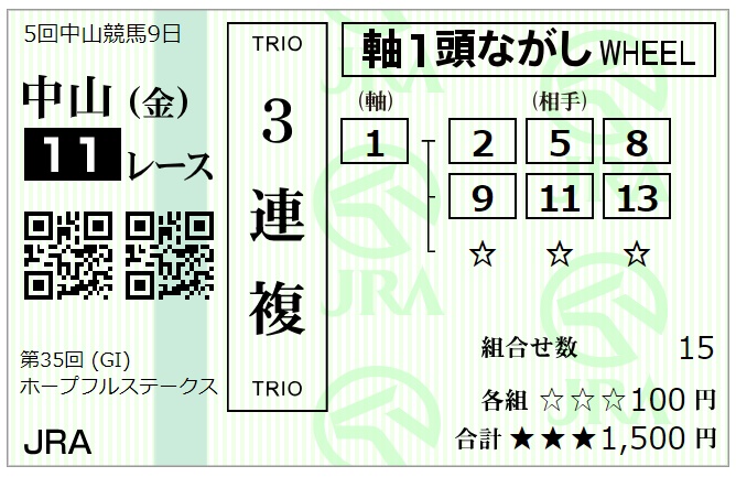 1-2・5・8・9・11・13 6頭流しで勝負!!